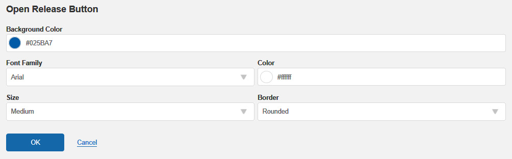 - in Email Builder go to the Element Blocks on the right side and click on the Open Release Button.This will display the Open Release edit panel.