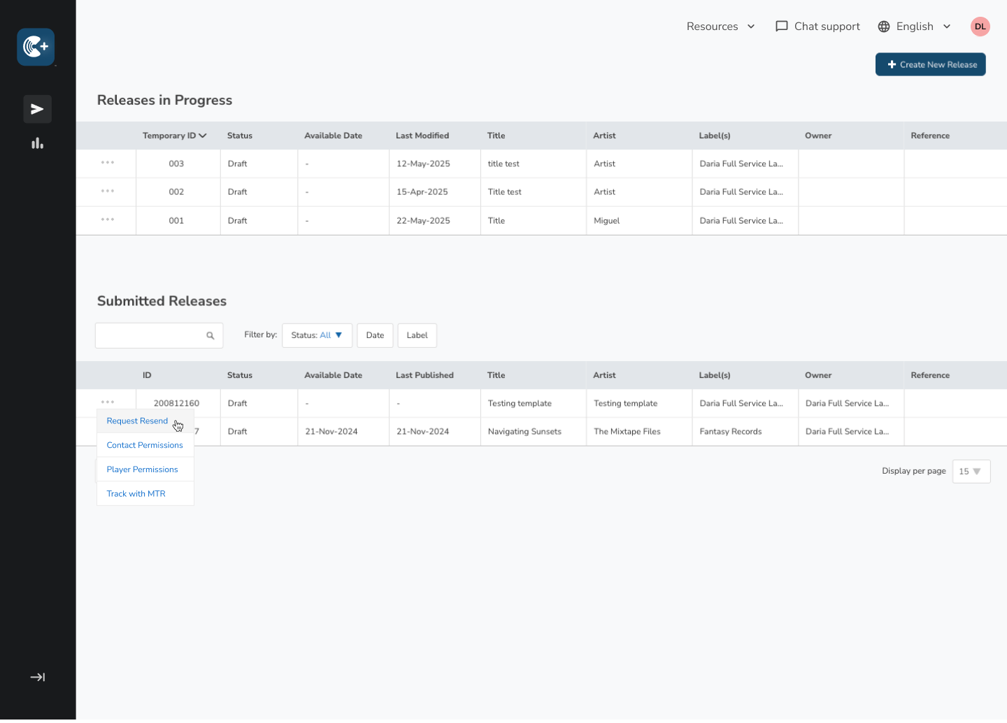To schedule a resend of your release, visit your Releases page. Click on the 3-dot menu on the release and select “Request Resend” as shown in the image below. This will open up the request form to start the process.