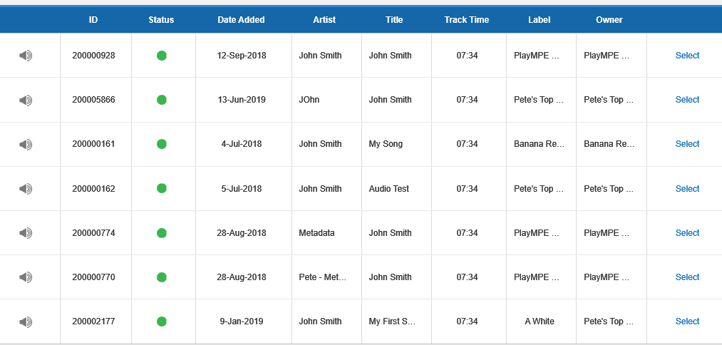 A new popup panel will appear listing the most recent audio assets for your label.